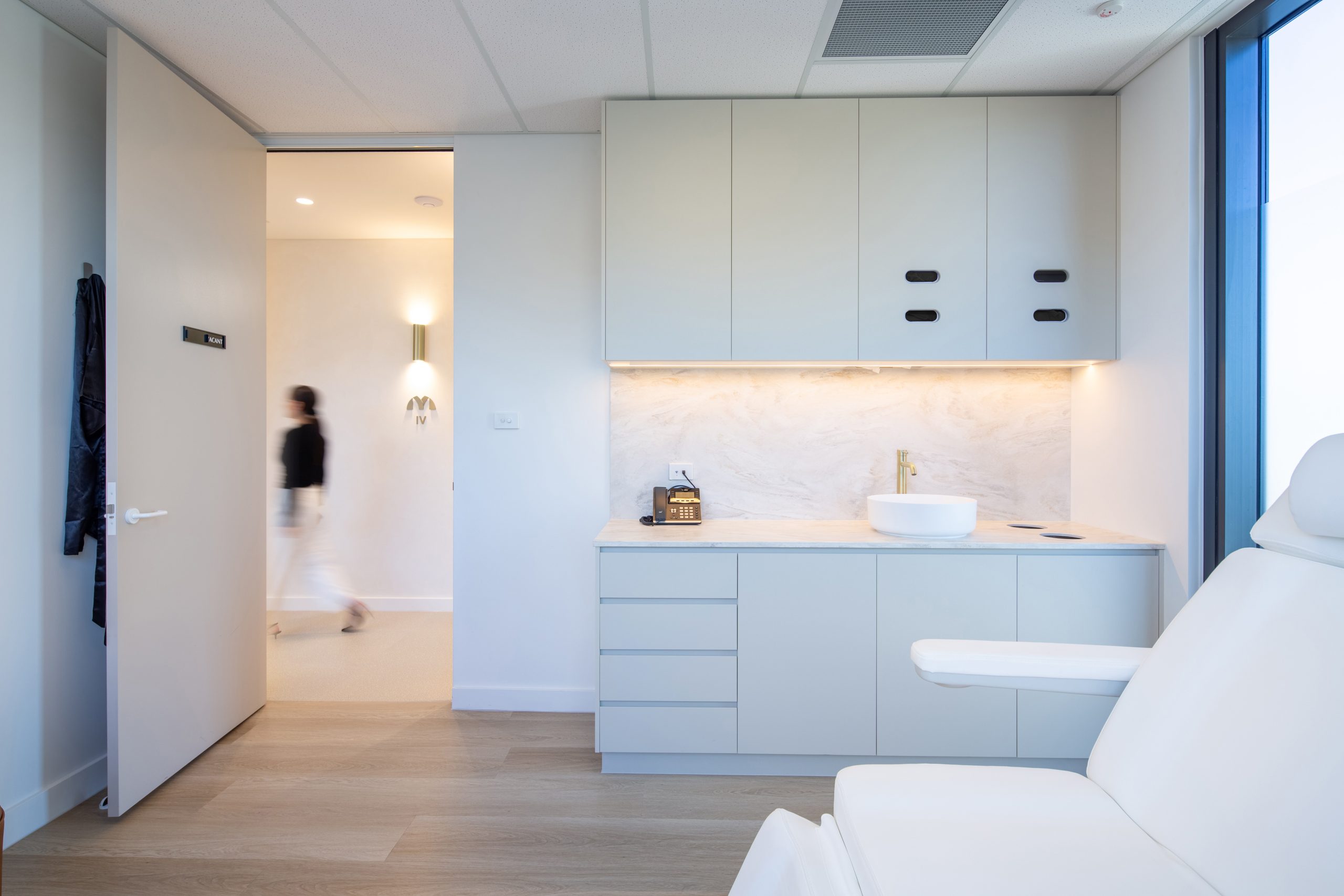 The design concept closely reflects Dr Mistry’s values, translating empathy, calmness, humility, and happiness into the spatial experience. A neutral, warm palette of soft beiges and timber tones, paired with warm architectural lighting, creates a soothing and inviting atmosphere.