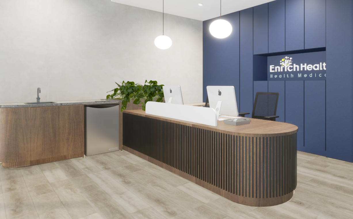The Enriching Health Medical project called for a sophisticated yet welcoming environment that balanced functionality with warmth. The challenge was to create a modern medical centre that felt approachable and calming while meeting strict healthcare compliance and spatial efficiency requirements within the existing building footprint.