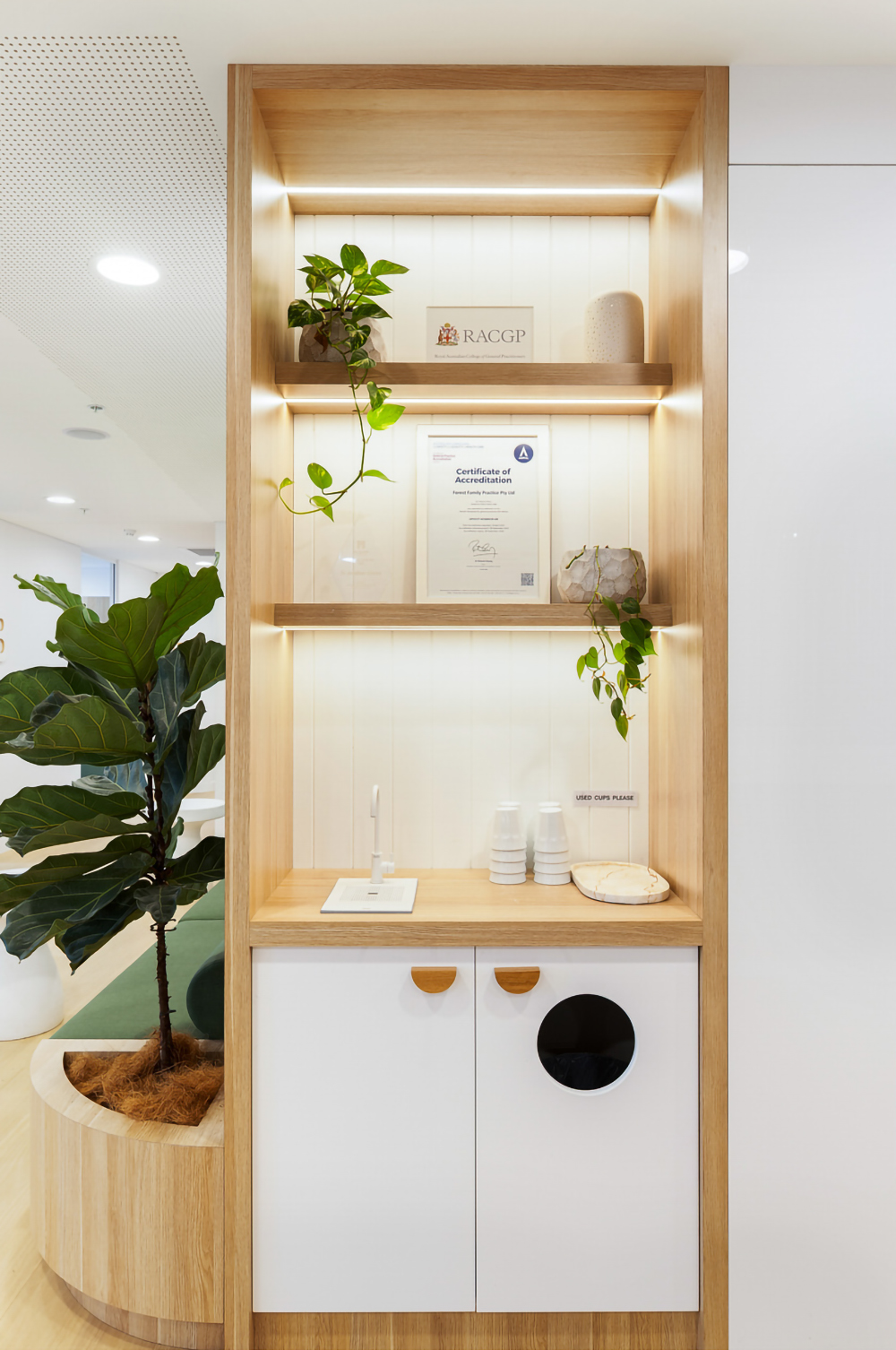 Maximising natural light and preserving the leafy outlook across all areas was the biggest design challenge. Clever spatial planning and glazed elements ensure every space feels bright and connected. Even the private lift lobby was reimagined to flow seamlessly into the main clinic, offering a calm and welcoming transition.