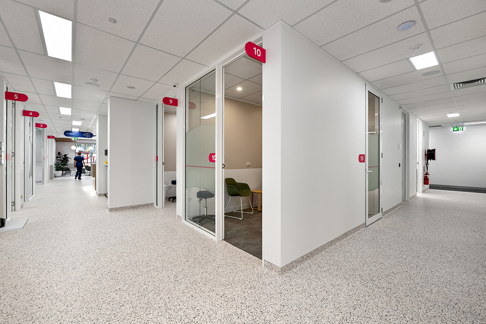 Dr Tim Stewart required a unique and welcoming environment for Heal Urgent Care, setting it apart from other clinics in Australia. The design focused on minimising waiting time through an efficient patient flow system. A comprehensive range of treatment bays and facilities were needed to cater to various health services. Patient privacy and comfort was also vital while maintaining an open and natural light-filled atmosphere.