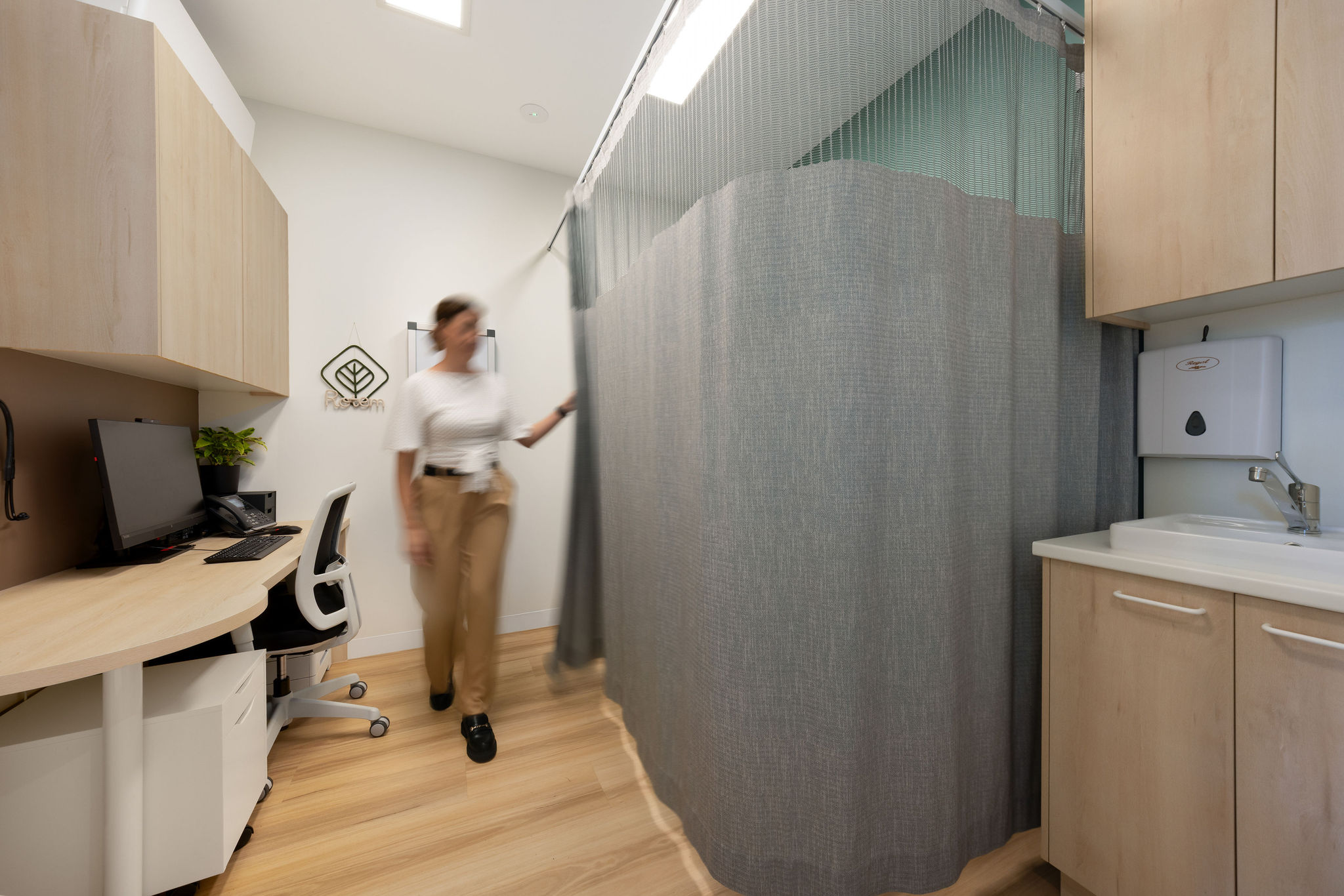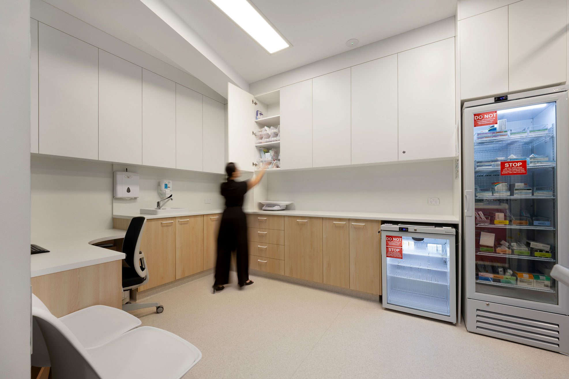 The fitout transforms the space into a calm, welcoming environment that feels a step removed from the busy Pacific Highway just outside. From the moment you enter, there’s a sense of quiet and ease, creating a more reassuring experience for patients.
