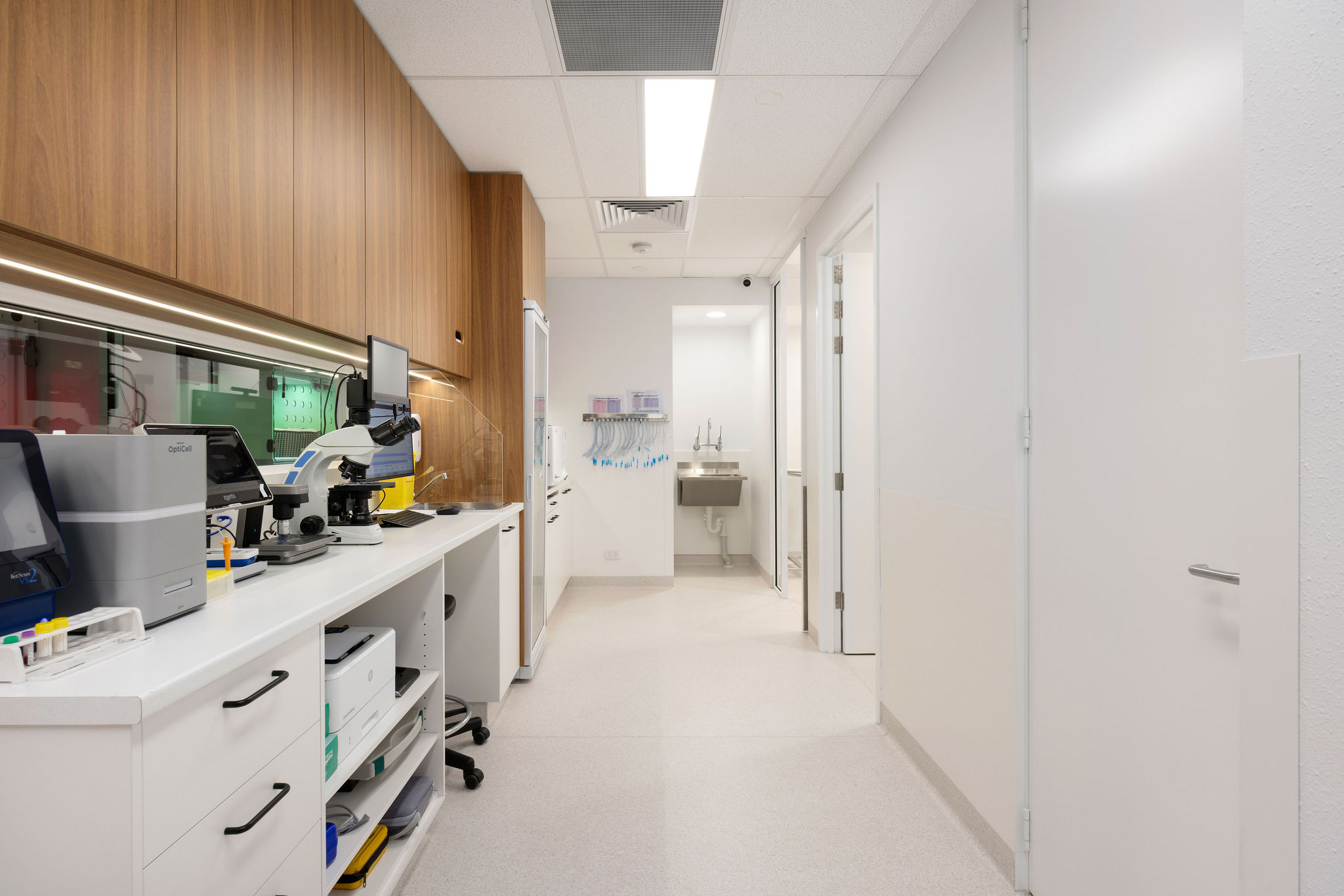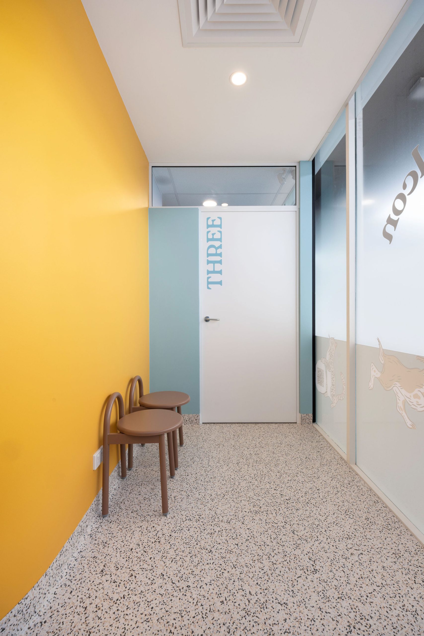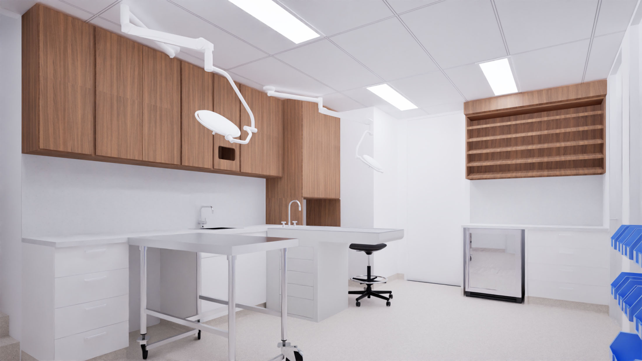 One of the primary challenges was balancing the technical requirements of a fully functioning veterinary clinic with the desire to create a calm, non-clinical environment. Veterinary spaces are inherently complex, requiring durability, hygiene, and efficiency, yet these same requirements can often lead to environments that feel cold or stressful. The project also required close alignment with the client’s strong values and vision, ensuring that every design decision authentically reflected their commitment to compassion, connection, and community. The Practice Principals wanted to make sure that the clinic (the space where patient owners traditionally don't see) was a showcase to give the owners peace of mind.